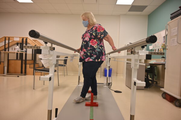 During the program’s group exercise sessions, Marion worked with weights, went up and down steps, used fitness machines, and worked heavily on balance by focusing on putting one foot in front of the other.