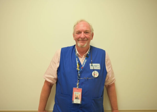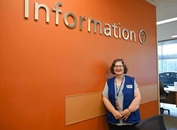 Teresa Sartori is an Information Desk Volunteer. Teresa helps patients arrive at their appointments, answers phone calls and inquiries, and connects patients with their loved ones.